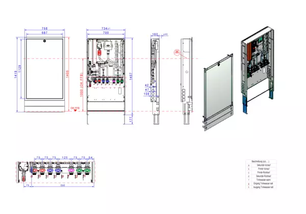 strawa Frischwasser-Wohnungsstation Friwara W22-FBR-HT-UP,BxHxT: 758 x 1472 x 172 mm, TW-Erwärmung max. 22 l/min, Festwert 20-50°C + HT-Abgang, kupfergel. PWT, UP-Schrank mit Frontblende RAL 9016