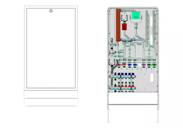 Die Wohnungsstation Friwara W-FBR-HT dient der Warmwasserversorgung, der Wärmeversorgung statischer Heizflächen (z.B. Heizkörper) und der Versorgung und Regelung von Flächenheizungen mit Festwertregler 20-50 °C mit integrierter Pumpe.