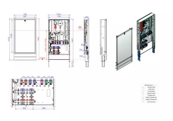 strawa Frischwasser-Wohnungsstation Friwara W22-FBR-63-HT-UP 6 Hkr.,BxHxT: 758 x 1472 x 172 mm, TW-Erwärmung max. 22 l/min, Festwert 20-50°C + HT-Abgang, Verteiler DFA 0-3 l/min + THV 30x1,5, kupfergel. PWT, UP-Schrank mit Frontblende RAL 9016