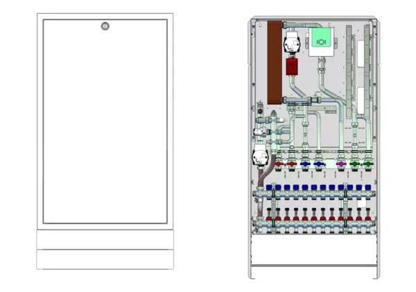 Die Wohnungsstation Friwara W-FBR-HT dient der Warmwasserversorgung, der Wärmeversorgung statischer Heizflächen (z.B. Heizkörper) und der Versorgung und Regelung von Flächenheizungen mit Festwertregler 20-50 °C mit integrierter Pumpe.