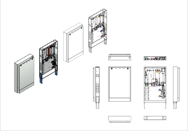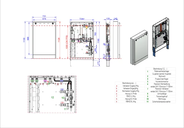 • Maße: AP-Schrank 0-6 Heizkreise: B x H x T: 731 x 1180 x 140 mm