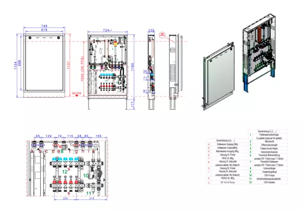 Trinkwassererwärmung max. 17 l/min, Festwertregelung 20-50 Grad Celsius und Hochtemperaturabgang, Verteiler Durchflussanzeiger 0-3 l/min und Thermostatventileinsatz für EGO-Verschluss, kupfergelötet Plattenwärmetauscher, Unterputz-Schrank mit Frontblende RAL 9016