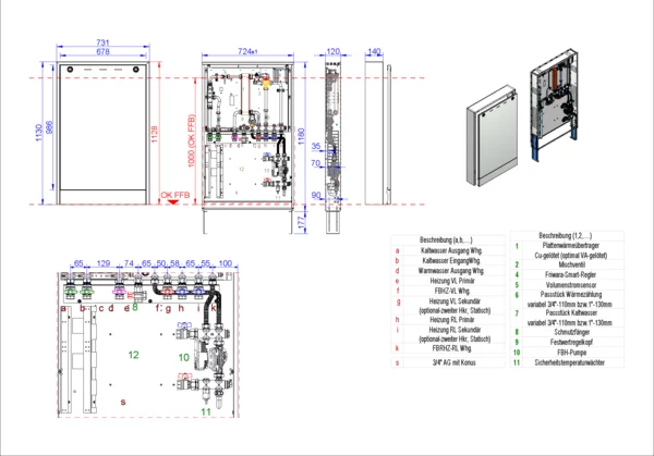 strawa Frischwasser-Wohnungsstation Friwara smart WS17-FBR-HT-CU-AP,BxHxT: 731 x 1182 x 140 mm, TW-Erwärmung bis max. 17 l/min und Festwert 20-50°C + HT-Abgang für Flächenheizung, kupfergelöteter PWT, im AP-Schrank in RAL 9016