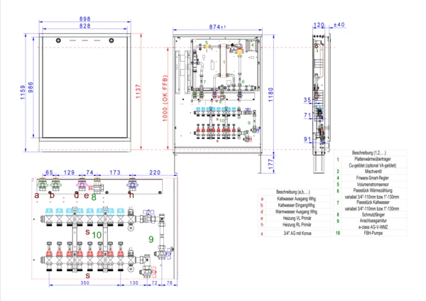 strawa Frischwasser-Wohnungsstation Friwara smart WS17-4L-CU-UP-18 11Hkr.,BxHxT: 898 x 1192 x 132 mm, 4-Leitersystem mit TW-Erwärmung max. 17 l/min, AG mit WMZ, Verteiler DFA min/max + THV f. EGO, kupfergel. PWT, UP-Schrank mit Frontblende RAL 9016