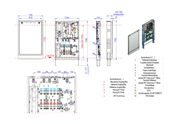 strawa Frischwasser-Wohnungsstation Friwara Hybrid WSHY1-4L18-Cu-UP-21 3H,BxHxT: 748 x 1192 x 132 mm, Hybrid-TW-Erwärmung m zus. Durchlauferhitzer 18-21 kW, Verteiler DFA min/max + THV für EGO-Verschluss, kupfergel. PWT, UP-Schrank Frontblende RAL 9016