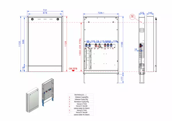 Modul 1, bestehend aus Schrank mit Anschlussleise für Friwara smart-WS-FBR-HT-AP von 2-6 Hkr.