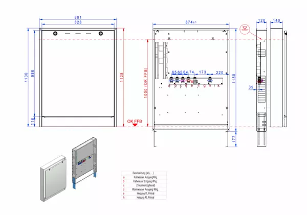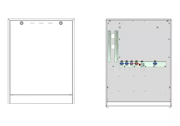 Modul 1, bestehend aus Schrank mit Anschlussleise für Friwara smart-WS-FBR-AP-Z und WS-4L-AP-Z für 7-11 Hkr. mit Zirkulation