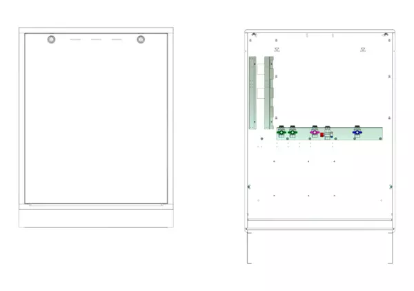 Modul 1, bestehend aus Schrank mit Anschlussleise für Friwara smart-WS-FBR-UP und WS-4L-UP für 7-11 Hkr.