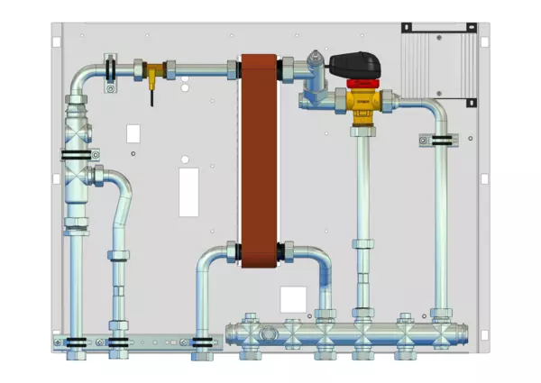 Modul 3 auf Montageplatte für Friwara smart-WS12-HT, Trinkwassererwärmung max. 17 l/min, kupfergelöteter Plattenwärmetauscher, Hochtemperaturabgang für statische Heizflächen