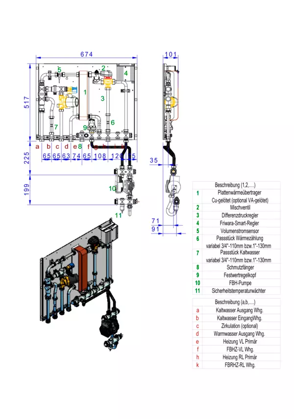 strawa Frischwasser-Modul Friwara smart-M2-3-WS-FBR-17-CU-Z,BxHxT: 674 x 1036 x 106 mm, Modul 2-3 auf Montageplatte für Friwara smart-WS12-FBR-Z (mit Zirkulation), TW-Erwärmung max. 17 l/min, kupfergelöteter PWT, Festwertregelung 20-50°C