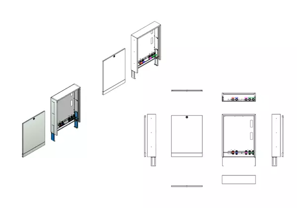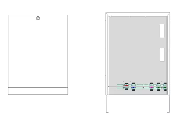 Modul 1, bestehend aus Schrank mit Anschlussleiste für modulare Bauweise der Frischwasser-Wohnungsstation Friwara-W22-AP.