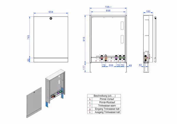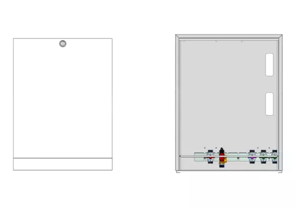 Modul 1, bestehend aus Schrank mit Anschlussleise für modulare Bauweise der Frischwasser-Wohnungsstation Friwara-W22-AP-SRV20