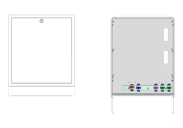 Modul 1, bestehend aus Schrank mit Anschlussleise für modulare Bauweise der Frischwasser-Wohnungsstation Friwara-W22-UP