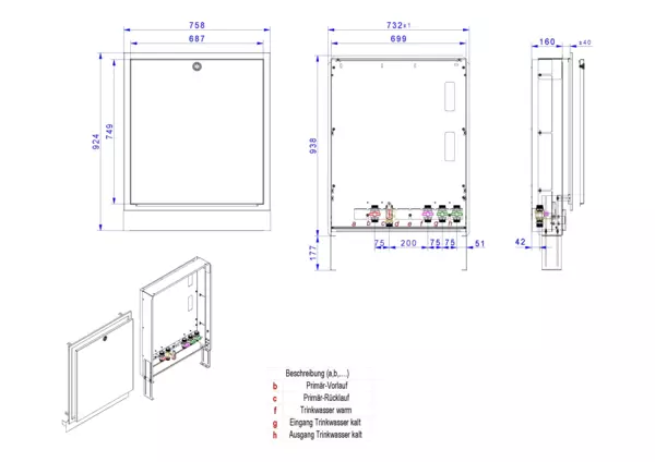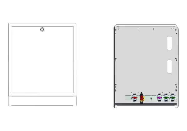Modul 1, bestehend aus Schrank mit Anschlussleise für modulare Bauweise der Frischwasser-Wohnungsstation Friwara-W22-UP-SRV20