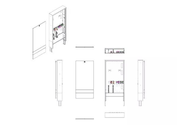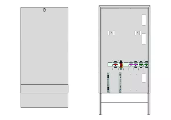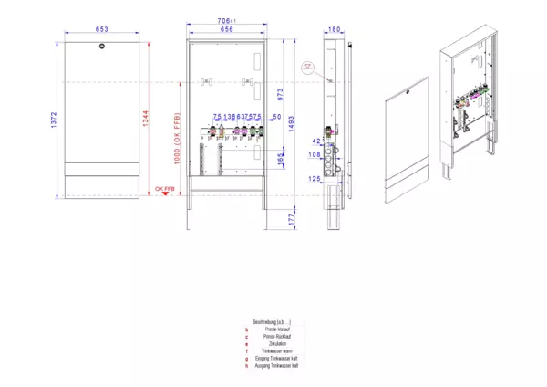 Modul 1, bestehend aus Schrank mit Anschlussleise für modulare Bauweise der Frischwasser-Wohnungsstation Friwara-W22-FBR-63 (18)-AP-SRV20 mit Zirkulation.