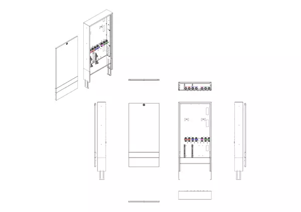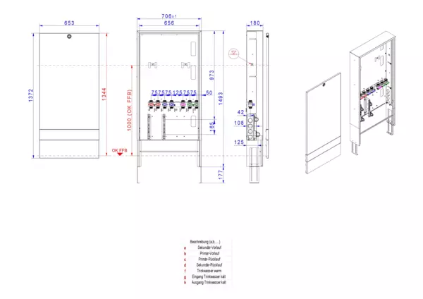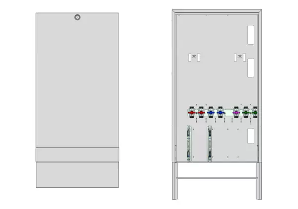 Modul 1, bestehend aus Schrank mit Anschlussleise für modulare Bauweise der Frischwasser-WohnungsstationFriwara-W22-FBR-63 (18)-HT-AP.