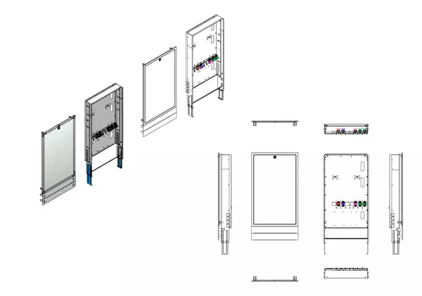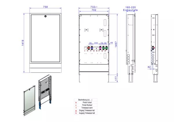 Modul 1, bestehend aus Schrank mit Anschlussleise für modulare Bauweise der Frischwasser-Wohnungsstation Friwara-W22-FBR-63 (18)-UP.