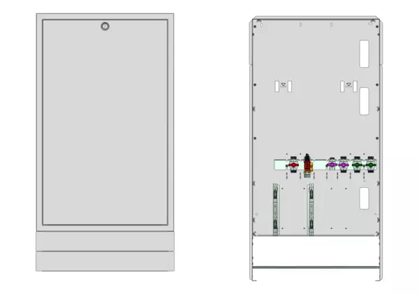 Modul 1, bestehend aus Schrank mit Anschlussleise für modulare Bauweise der Frischwasser-Wohnungsstation Friwara-W22-UP-FBR-63 (18)-SRV20 mit Zirkulation.