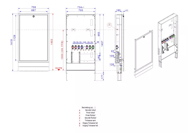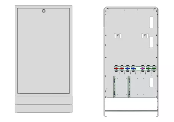 Modul 1, bestehend aus Schrank mit Anschlussleise für modulare Bauweise der Frischwasser-Wohnungsstation Friwara-W22-FBR-63 (18)-HT-UP.