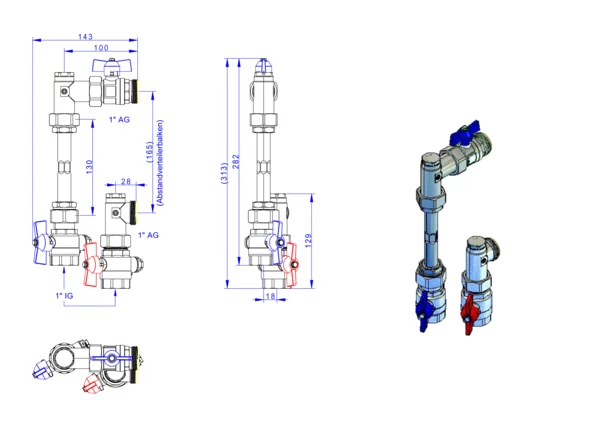 strawa FBH-Anschlussgarnitur Friwara-M4-W-4L AG 1'' V-WMZ-F2 variabel
