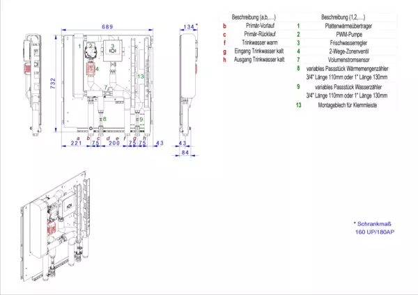 Modul 3 Frischwassermodul Schüttleistung 77 kW, kupfergelöteter Plattenwärmetauscher für Friwara W22 mit Dämmung Plattenwärmetauscher und Rohrleitung