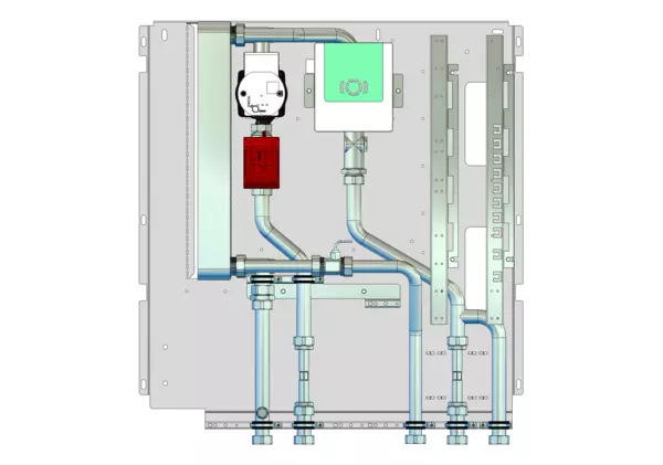 Frischwassermodul auf Montageplatte für modulare Bauweise der Frischwasser-Wohnungsstation Friwara-W22 und Friwara-W22-4L.