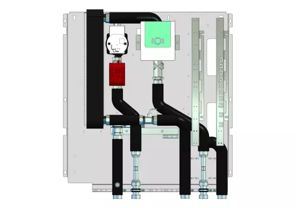 Frischwassermodul auf Montageplatte für modulare Bauweise der Frischwasser-Wohnungsstation Friwara-W22 und Friwara-W22-4L.