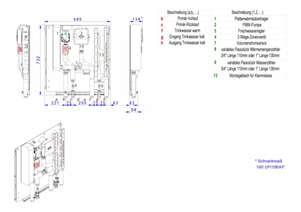 strawa Frischwasser-Wohnungsstation Friwara-M3-W-22-VA-D,BxHxT: 689 x 737 x 134 mm, Modul 3 Frischwassermodul Schüttleistung 77 kW, edelstahlgelöteter PWT für Friwara W22 mit Dämmung PWT und Rohrleitung