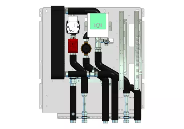 Frischwassermodul auf Montageplatte für modulare Bauweise der Frischwasser-Wohnungsstation Friwara-W32 und Friwara-W32-4L.