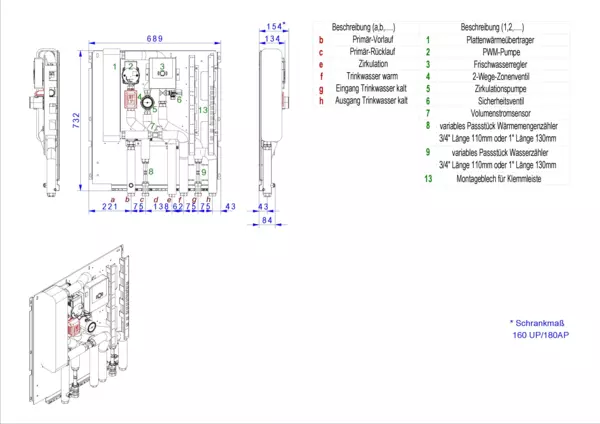 strawa Frischwasser-Wohnungsstation Friwara-M3-W-32-CU-Z-D,BxHxT: 689 x 737 x 134 mm, Modul 3 Frischwassermodul Schüttleistung 111 kW, kupfergelöteter PWT für Friwara W32 mit Zirkulation und Dämmung PWT und Rohrleitung