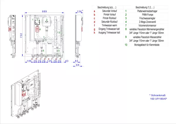 strawa Frischwasser-Wohnungsstation Friwara-M3-W-HT-22-CU,BxHxT: 689 x 737 x 134 mm, Modul 3 Frischwassermodul Schüttleistung 77 kW, kupfergelöteter PWT, mit Hochtemperaturabgang für Friwara W22-HT