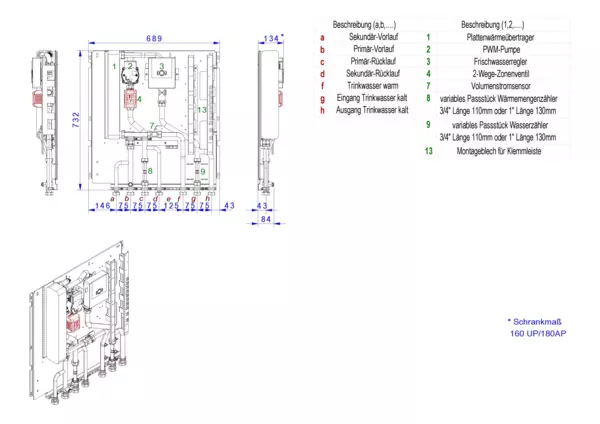 strawa Frischwasser-Wohnungsstation Friwara-M3-W-HT-22-VA,BxHxT: 689 x 737 x 134 mm, Modul 3 Frischwassermodul Schüttleistung 77 kW, edelstahlgelöteter PWT, mit Hochtemperaturabgang für Friwara W22-HT