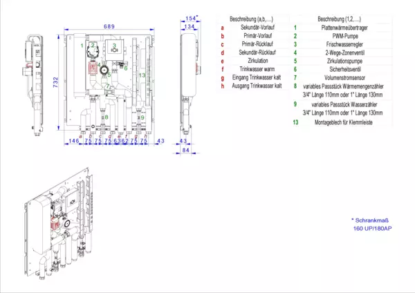 strawa Frischwasser-Wohnungsstation Friwara-M3-W-HT-32-VA-Z-D,BxHxT: 689 x 737 x 134 mm, Modul 3 Frischwassermodul Schüttleistung 111 kW, edelstahlgelöteter PWT, mit Hochtemperaturabgang für Friwara W32-HT mit Zirkulation und Dämmung PWT und Rohrleitung