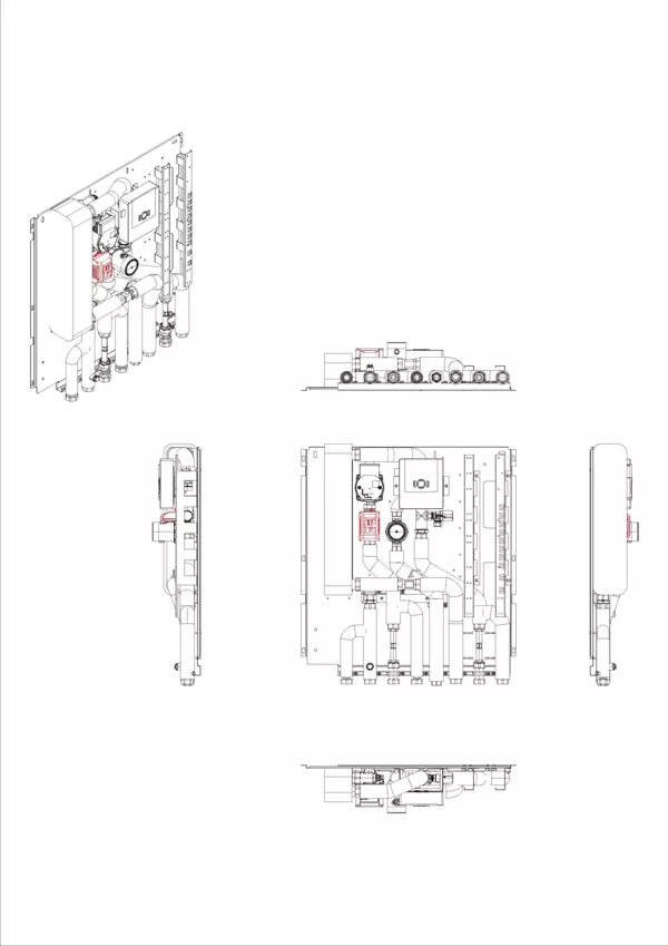 Frischwassermodul auf Montageplatte für modulare Bauweise der Frischwasser-Wohnungsstation Friwara-W32-HT. Das Frischwasser-Modul dient der Warmwasserversorgung und der Wärmeversorgung statischer Heizflächen (z.B. Heizkörper).