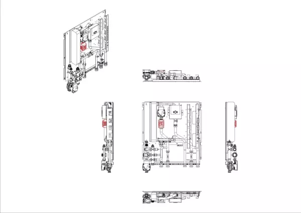 Frischwassermodul auf Montageplatte für modulare Bauweise der Frischwasser-Wohnungsstation Friwara-W22-FBR. Das Frischwassermodul dient der Warmwasserversorgung und zusätzlich der Versorgung und Regelung von Flächenheizungen mit Festwertregler 20-50 °C mit integrierter Pumpe.