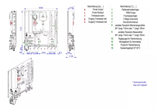 Modul 3 Frischwassermodul Schüttleistung 77 kW, edelstahlgelöteter Plattenwärmetauscher, mit Festwertregelung für Friwara W22-FBR