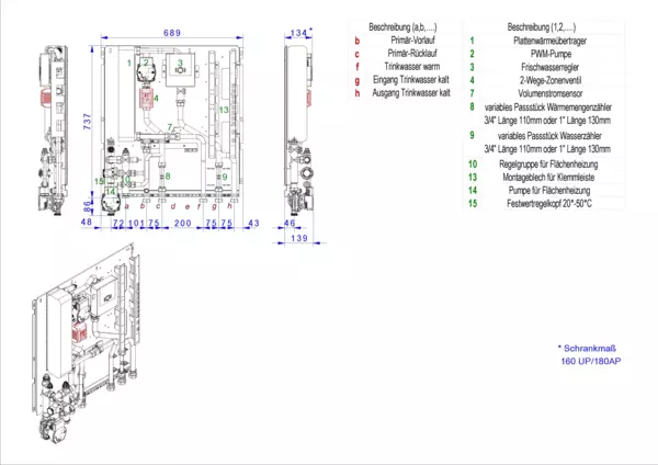strawa Frischwasser-Wohnungsstation Friwara-M2-3-W-FBR-32-VA,BxHxT: 689 x 823 x 139 mm, Modul 3 Frischwassermodul Schüttleistung 111 kW, edelstahlgelöteter PWT, mit Festwertregelung für Friwara W32-FBR