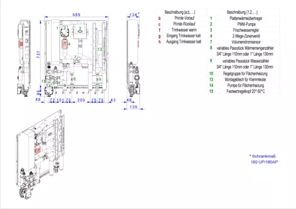 strawa Frischwasser-Wohnungsstation Friwara-M2-3-W-FBR-32-VA-D,BxHxT: 689 x 823 x 139 mm, Modul 3 Frischwassermodul Schüttleistung 111 kW, edelstahlgelöteter PWT, mit Festwertregelung für Friwara W32-FBR mit Dämmung PWT und Rohrleitung