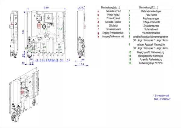 Modul 3 Frischwassermodul Schüttleistung 77 kW, kupfergelöt. Plattenwärmetauscher, mit Festwertregel. U. Hochtemperaturabgang für Friwara W22-FBR-HT mit Zirkul. und Dämmung Plattenwärmetauscher + Rohrleitung