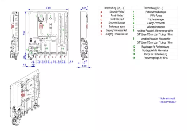 Modul 3 Frischwassermodul Schüttleistung 111 kW, kupfergelöteter Plattenwärmetauscher, mit Festwertregelung und Hochtemperaturabgang für Friwara W32-FBR-HT