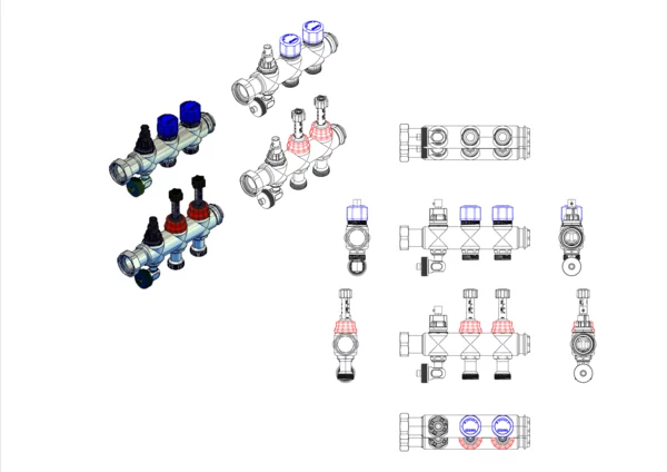 • linear nebeneinander angeordnete Heizkreisabgänge