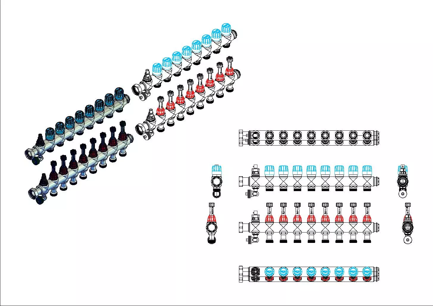 • linear nebeneinander angeordnete Heizkreisabgänge