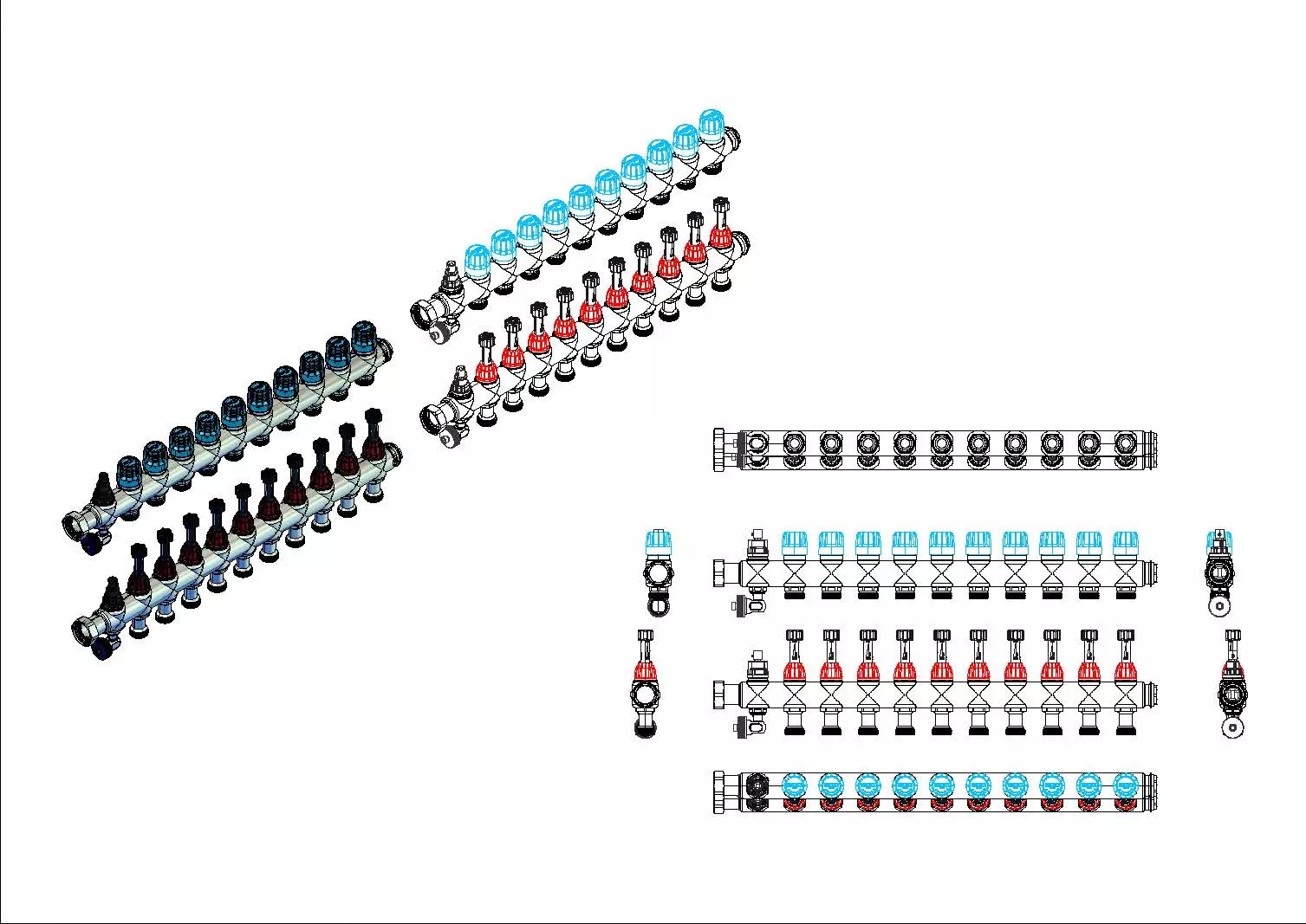 • linear nebeneinander angeordnete Heizkreisabgänge
