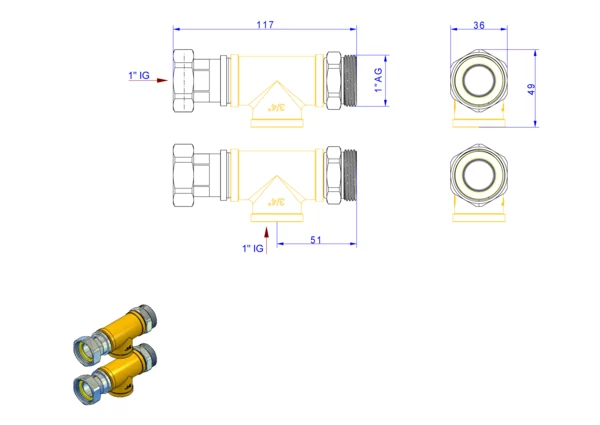 strawa Anschluss-T-Stück-Set Subverteiler 3/4'',BxHxT: 49 x 117 x 36 mm, passend für e-class Verteiler