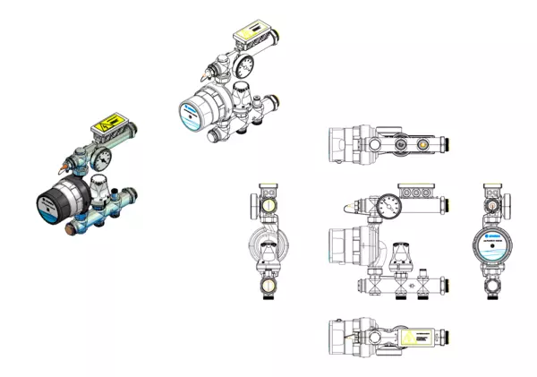Die Regelgruppe für Flächenheizungen dient zur Vorschaltung vor Anschlussverteiler bei hohen Systemtemperaturen. Abhängig vom Wärmebedarf kann die Regelgruppe ca. 120 m² Fußbodenheizungsfläche versorgen. An die Regelgruppe können alle e-class VA Verteiler angeschlossen werden. Die FBR-Regelgruppe zur Vorlauftemperaturregelung ermöglicht es in bestehenden Heizungsanlagen problemlos Fußbodenheizungen anzuschließen. Ein Stellventil im Primärvorlauf regelt die gewünschte Vorlauftemperatur für die Fußbodenheizung. Zu hohe Vorlauftemperaturen > 60°C werden durch den Temperaturbegrenzer verhindert. Die elektronisch geregelte Pumpe passt den erforderlichen Volumenstrom dem aktuellen Wärmebedarf an. Der Einsatz der Regelgruppe ist in Verbindung mit e-class Verteilern in strawa Unterputz-Verteilerschränken Typ 69 und C69 möglich. Der Primäranschluss ist für Klemmverschraubeungen mit3/4" Überwurf mit Eurokonus geeignet.