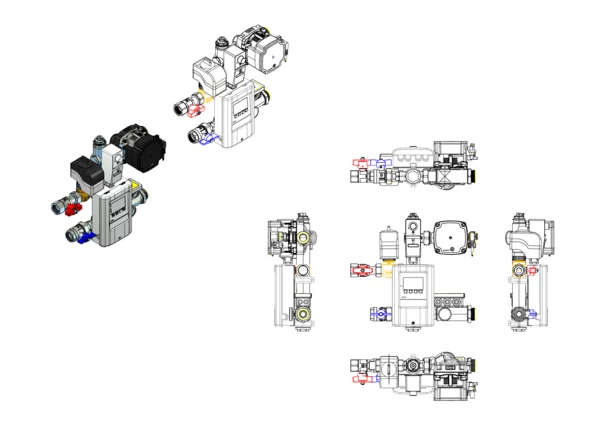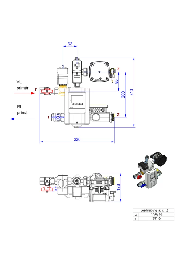 - Anschluss horizontal 1" AG flachdichtend im Vor- und Rücklauf, passend für e-class VA Verteiler