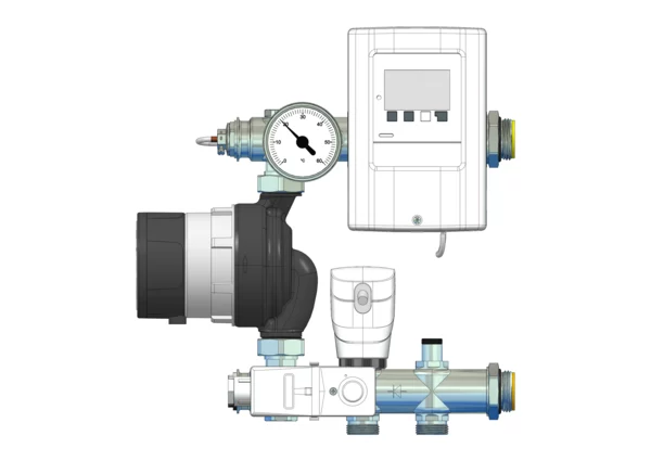 - Anschluss horizontal 1" AG flachdichtend im Vor- und Rücklauf, passend für e-class VA Verteiler