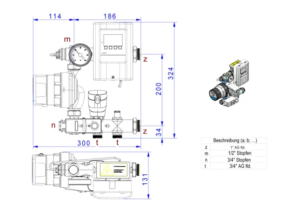 strawa FBM-Mischgruppe VA 130/4-vertikal mit Pumpe Lowara Eco Floor, Regler MHCC