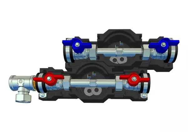 Die Wasserzählereinbaustrecke mit Absperrungen für Trinkwasser kalt und warm mit Dämmung und zusätzlichem Zirkulationsanschluss ist für den Einbau in Standard-Anschlussstationen bzw. Standard-Schränke konzipiert und ermöglicht den nachträglichen Einbau von Wasserzählern mit 3/4" AG mit einer Länge von 110 mm und Zirkulationsventilen.