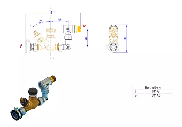 strawa Zirkulationsregler NexusValve TW DN15 thermisch 50-60 Grad C m.Verrohrung
